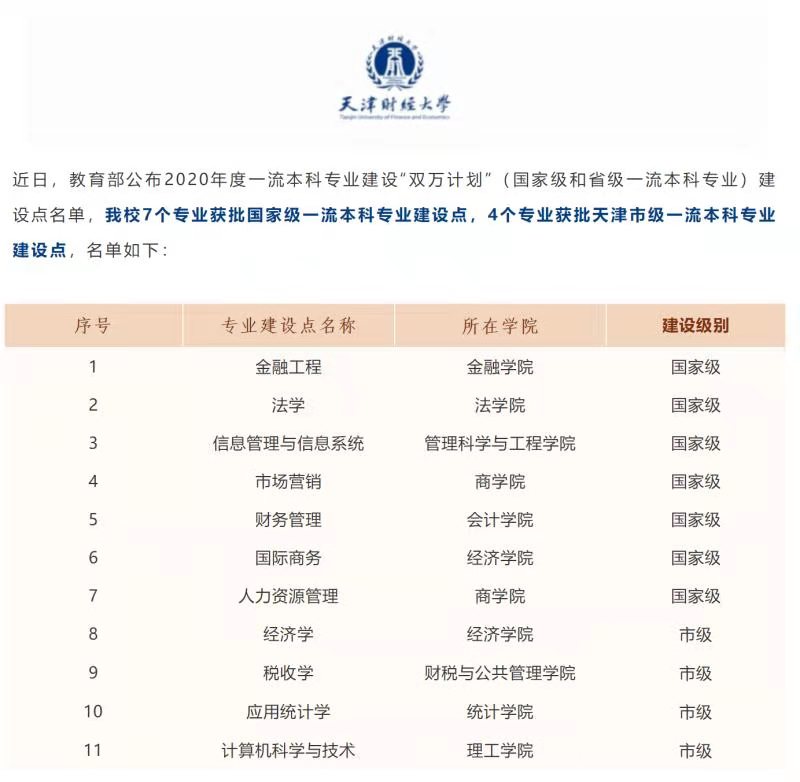 近日,教育部办公厅公布了2020年度国家级和省级一流本科专业建设点名单,yl88858永利官网信息管理与信息系统专业获批国家级一流本科专业建设点。这是继工程管理专业获得2019年度天津市一流本科专业建设点之后,公司在专业建设上取得的又一成绩。
