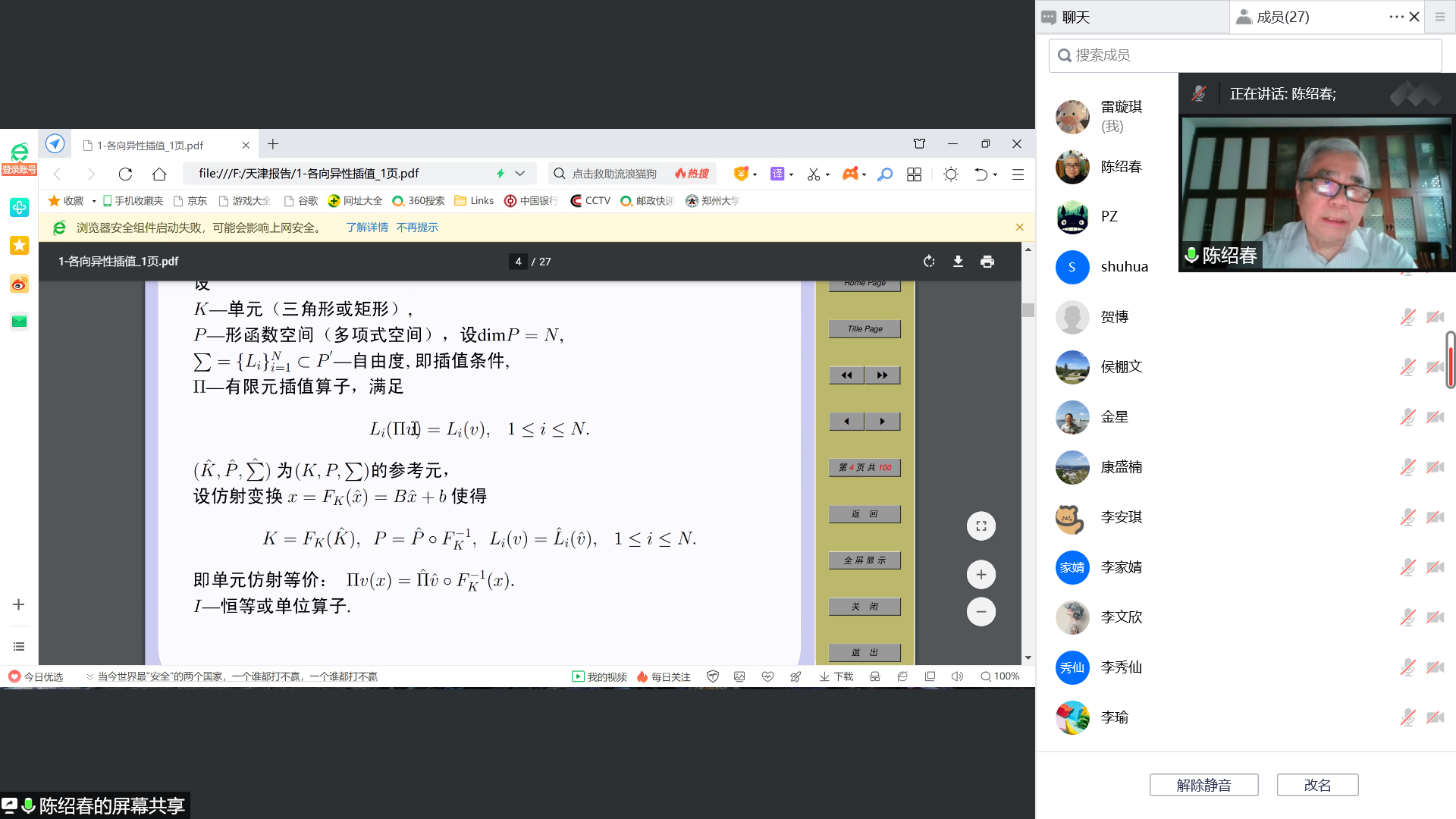 2022年9月21日,郑州大学陈绍春教授应邀为本公司师生做了题为“各向异性有限元的插值理论”的专题学术讲座。本次讲座线上进行。