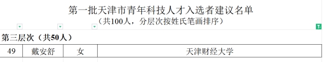yl88858永利官网戴安舒副教授入选天津市第一批青年科技人才