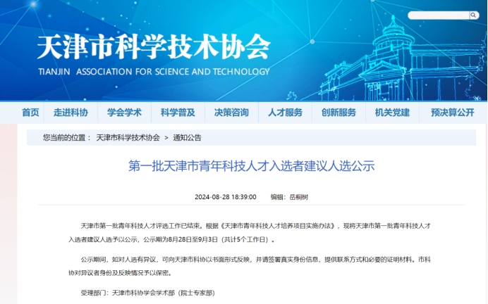 天津市青年科技人才项目由市委人才办统筹协调,市科协组织实施,旨在选拔具有较强创新潜力的青年科技人才,支持他们潜心研究、深入探索,培育一批有望在世界科技前沿取得突破的优秀青年科技人才。青年科技人才每年评选一次,每次评选仅100人左右。