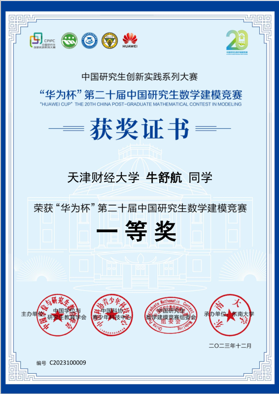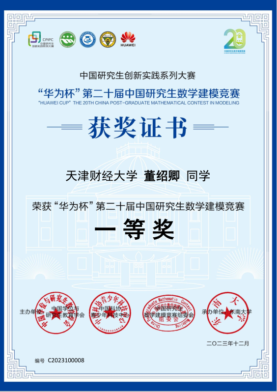 “华为杯”第二十届中国研究生数学建模竞赛于2023年9月22-26日顺利举行,公司研究生在第二十届中国研究生数学建模竞赛中获得佳绩,1支队伍获得一等奖,1支队伍获得二等奖,3支队伍获得三等奖。
