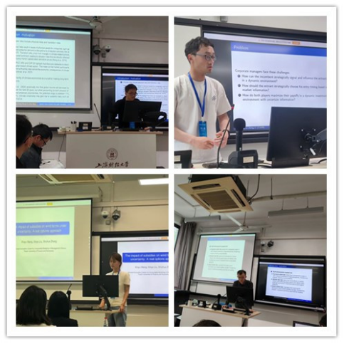 公司博士后彭凡一老师在金融大数据、机器学习分会场作了题为“Deep learning solution of optimal reinsurance-investment strategies with inside information and multiple risks”的报告;博士生李云龙在概率、随机控制分会场作了题为“Entry and Production under Uncertainty: A Signaling Game Framework”的报告;博士生刘欣亚在保险精算分会场作了题为“Investment analysis Real options Government subsidies Capacity expansion Operations-finance interface”的报告;博士生吴雨晗在概率、随机控制分会场作了题为“基于柔性Actor-Critic算法的多资产投资优化机制与实证研究”的报告;硕士生胡开轩在投资组合、消费分会场作了题为“Optimal Carbon Emission Path under Uncertainty: Physical Risks and Transition Risks”的报告。