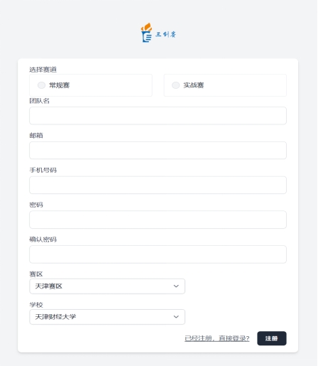 3.进入注册报名页面,按照下图内容填报信息,进行注册。参赛选手若要同时参加常规赛和实战赛,则需进行两次注册。同一团队如果参加两个比赛也必须注册两个团队ID号。