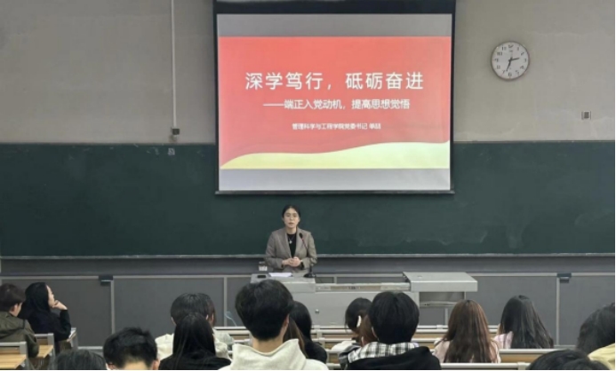 本次培训邀请了管科公司党委书记单喆为积极分子讲授第一节课。单喆老师以“深学笃行,砥砺奋进——端正入党动机,提高思想觉悟”为题,带领同学们一起学习习近平总书记视察天津重要讲话精神,并深刻领会新质生产力的重要内涵,鼓励同学们矢志创新,大力弘扬科学家精神。最后,单喆老师对大家提出展望,希望大家能够树立正确价值观,积极践行时代使命。