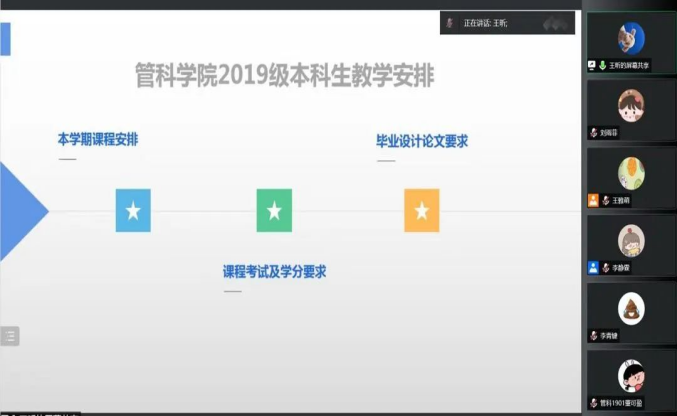 管科公司教学科研办公室王昕老师从本学期课程安排、课程考试及学分要求、毕业设计论文要求三个方面为同学们介绍了教学管理相关要求,详细说明了达到毕业条件的具体要求以及重修、补考、缓考、复考的考试要求。对于同学们关注的毕业设计论文的时间安排,王昕老师也进行了清淅的阐述。最后,老师希望同学们要在达到学分的要求上尽早开始毕业设计论文的撰写工作。